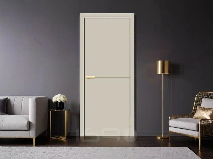 Дверь межкомнатная Браво-0.21.П (SG:P3) ПЭТ Cream Silk, глухая, декор sgold, кромка обычная, каркасно-щитовая