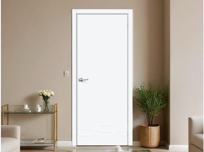 Дверь межкомнатная Браво-0.П ПЭТ White Silk, глухая, декор white silk, кромка abs, каркасно-щитовая