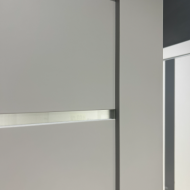 ПЭТ- облицовочный материал нового поколения, соответствует актуальному тренду на матовые поверхности. 100% «эмаль-эффект» — как эмаль, только лучше. Один из самых экологичных материалов (институт Fraunhofer IVV, Германия). С гладкой и приятной на ощупь поверхностью, устойчиво к повреждениям, не выцветает со временем. Поверхность плёнки защищена специальным супер матовым лаком, отверждённым эксимерным УФ-излучением, имеет специальное покрытие Anti-fingerprint. Такое покрытие не оставляет на себе отпечатки пальцев и обладает устойчивостью к механическим повреждениям (царапины, удары) и к воздействию бытовых реагентов. ПЭТ материал отличается легкостью переработки, не содержит растворителей, формальдегидов и тяжелых металлов, не выцветает со временем. ПЭТ – не деформируется, водонепроницаем, обладает высокой степенью шумоизоляции, лёгок в использовании.