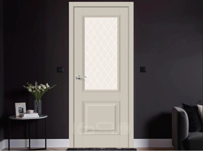Дверь межкомнатная Классик-13 ПЭТ Cream Silk, остекленная, декор багет, white сrystal, кромка нет, царговая 200x60