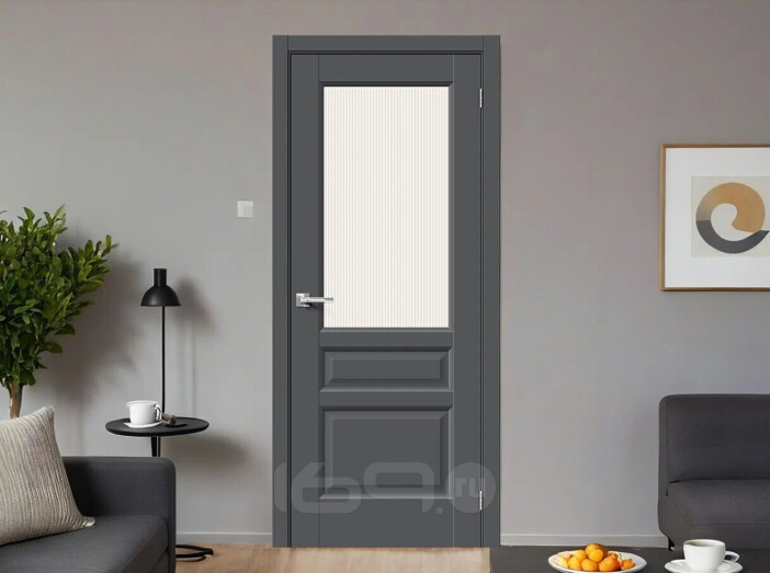 Дверь межкомнатная Неоклассик-35 ПЭТ Stormy Silk, остекленная, рифлёное стекло magic moru, кромка нет, царговая
