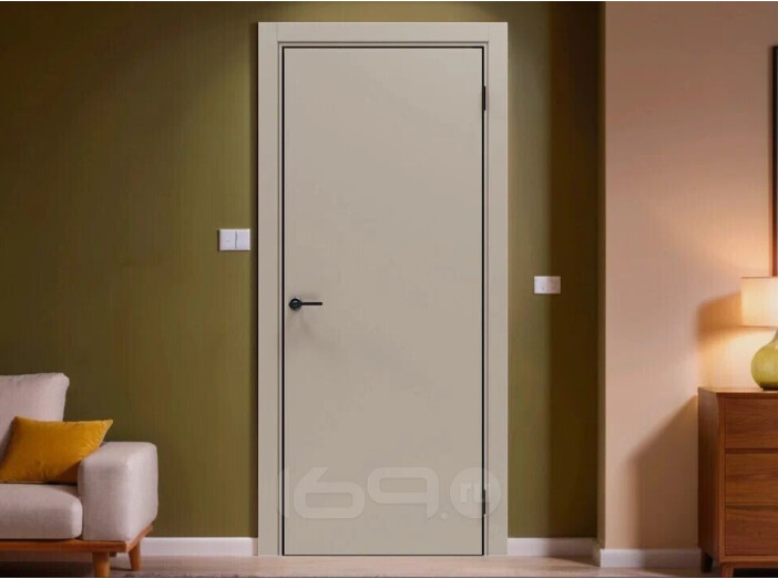 Дверь межкомнатная Порта-50 4AB ПЭТ Keramik Beige, глухая, кромка алюминиевая черная матовая, каркасно-щитовая