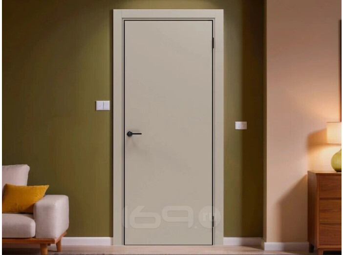 Дверь межкомнатная Порта-50 4AB ПЭТ Keramik Beige, глухая, кромка алюминиевая черная матовая, каркасно-щитовая