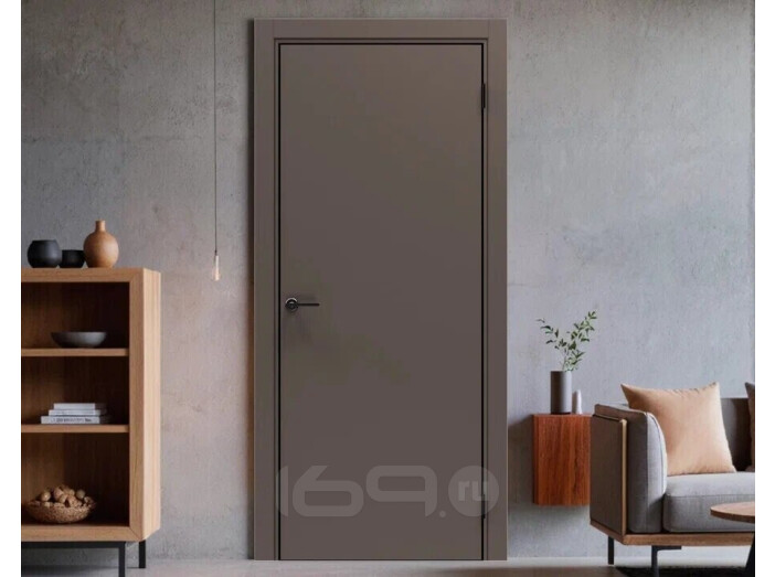 Дверь межкомнатная Порта-50 4AB ПЭТ Keramik Brown, глухая, кромка алюминиевая черная матовая, каркасно-щитовая
