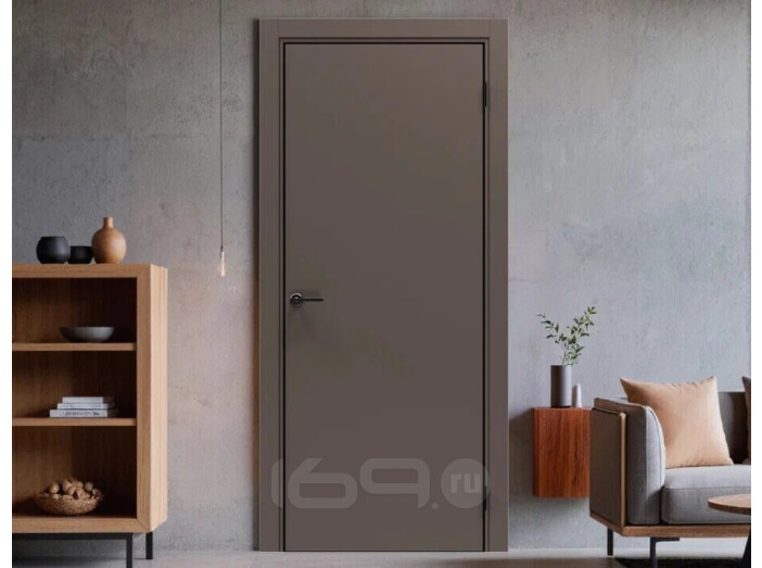 Дверь межкомнатная Порта-50 4AB ПЭТ Keramik Brown, глухая, кромка алюминиевая черная матовая, каркасно-щитовая