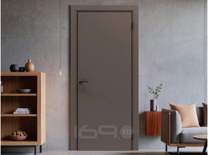Дверь межкомнатная Порта-50 4AB ПЭТ Keramik Brown, глухая, кромка алюминиевая черная матовая, каркасно-щитовая
