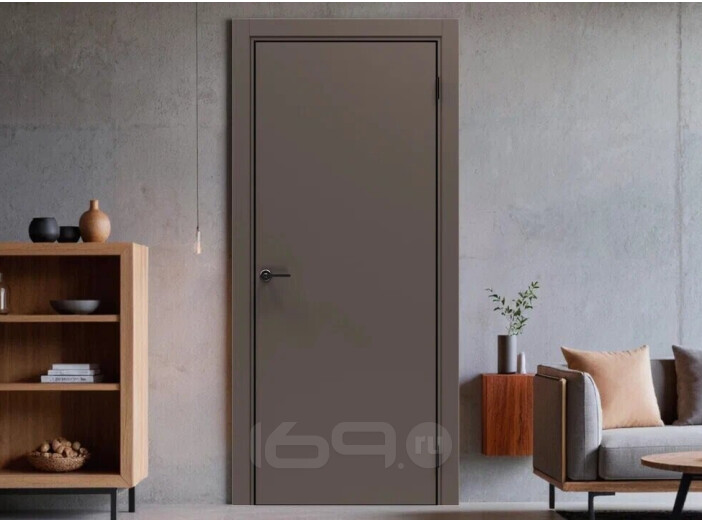Дверь межкомнатная Порта-50 4AB ПЭТ Keramik Brown, глухая, кромка алюминиевая черная матовая, каркасно-щитовая
