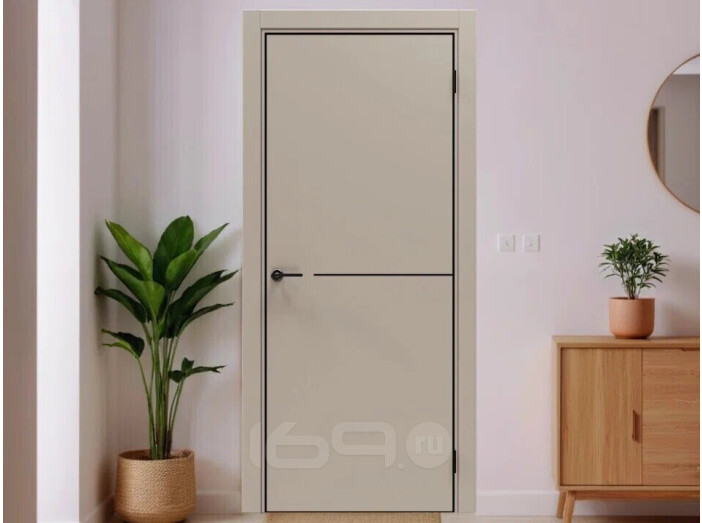Дверь межкомнатная Порта-50.1 4AB ПЭТ Keramik Beige, глухая, кромка алюминиевая черная матовая, каркасно-щитовая