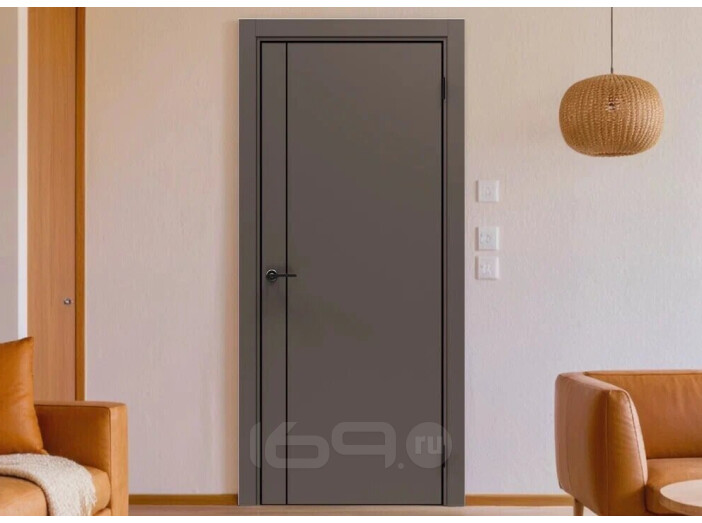 Дверь межкомнатная Порта-50.11 4AB ПЭТ Keramik Brown, глухая, кромка алюминиевая черная матовая, каркасно-щитовая