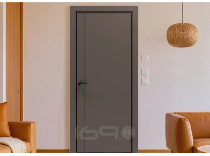 Дверь межкомнатная Порта-50.11 4AB ПЭТ Keramik Brown, глухая, кромка алюминиевая черная матовая, каркасно-щитовая