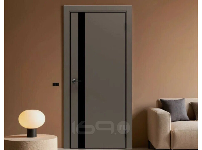 Дверь межкомнатная Порта-51 4AB ПЭТ Keramik Brown, глухая, кромка матовая черная, каркасно-щитовая
