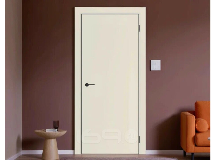 Дверь межкомнатная Порта-50 4AB ПЭТ Shellac Cream, глухая, кромка алюминиевая черная матовая, каркасно-щитовая