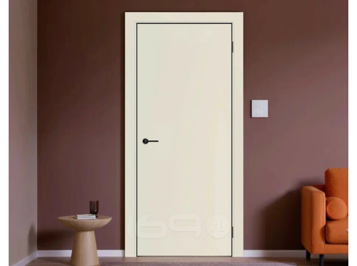 Дверь межкомнатная Порта-50 4AB ПЭТ Shellac Cream, глухая, кромка алюминиевая черная матовая, каркасно-щитовая