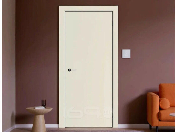 Дверь межкомнатная Порта-50 4AB ПЭТ Shellac Cream, глухая, кромка алюминиевая черная матовая, каркасно-щитовая