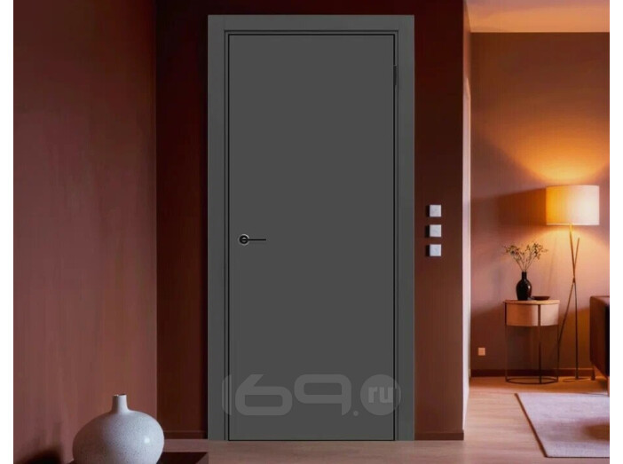 Дверь межкомнатная Порта-50 4AB ПЭТ Shellac Graphite, глухая, кромка матовая черная, каркасно-щитовая