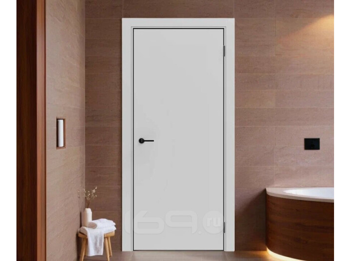 Дверь межкомнатная Порта-50 4AB ПЭТ Shellac Grey, глухая, кромка алюминиевая черная матовая, каркасно-щитовая