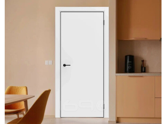 Дверь межкомнатная Порта-50 4AB ПЭТ Shellac White, глухая, кромка матовая черная, каркасно-щитовая