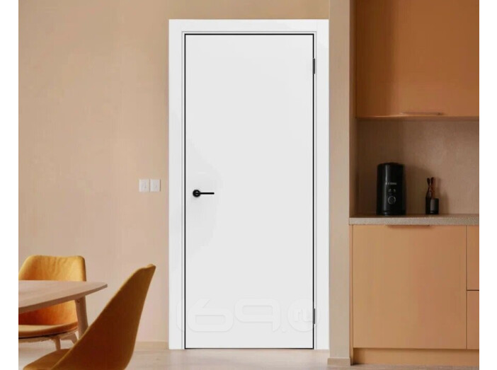 Дверь межкомнатная Порта-50 4AB ПЭТ Shellac White, глухая, кромка алюминиевая черная матовая, каркасно-щитовая 210x60