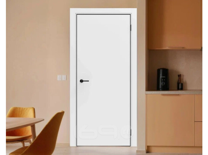 Дверь межкомнатная Порта-50 4AB ПЭТ Shellac White, глухая, кромка алюминиевая черная матовая, каркасно-щитовая