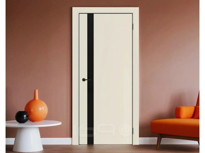 Дверь межкомнатная Порта-51 4AB ПЭТ Shellac Cream, глухая, декор black star, кромка матовая черная, каркасно-щитовая