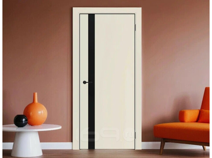Дверь межкомнатная Порта-51 4AB ПЭТ Shellac Cream, глухая, декор black star, кромка матовая черная, каркасно-щитовая