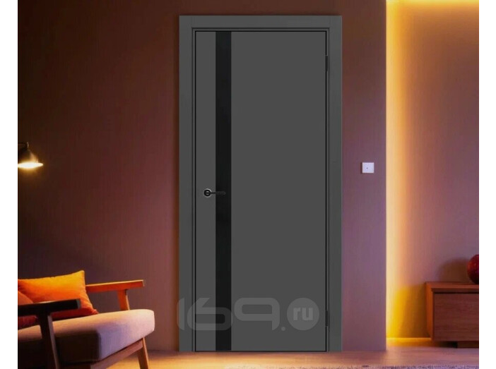 Щитовая дверь высокой прочности, которую обеспечивает жесткий тамбурат с малым размером ячейки и плита HDF (на 33% толще обычной). Используем PUR-клея необратимой полимеризации. По периметру двери установлена алюминиевая кромка чёрного цвета. Дверь укомплектована черным окрашенным стеклом лакобель - Black Star