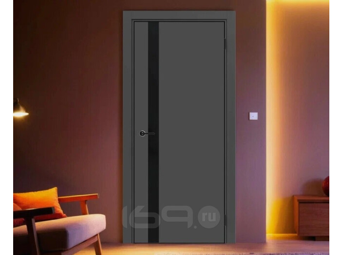 Дверь межкомнатная Порта-51 4AB ПЭТ Shellac Graphite, глухая, декор black star, кромка матовая черная, каркасно-щитовая