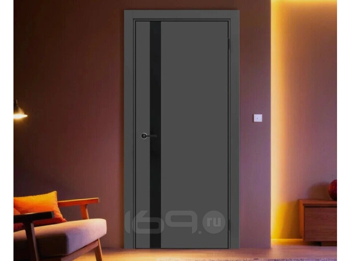 Дверь межкомнатная Порта-51 4AB ПЭТ Shellac Graphite, глухая, декор black star, кромка матовая черная, каркасно-щитовая