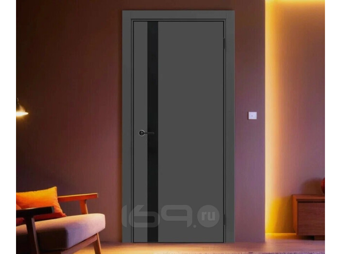 Дверь межкомнатная Порта-51 4AB ПЭТ Shellac Graphite, глухая, декор black star, кромка матовая черная, каркасно-щитовая