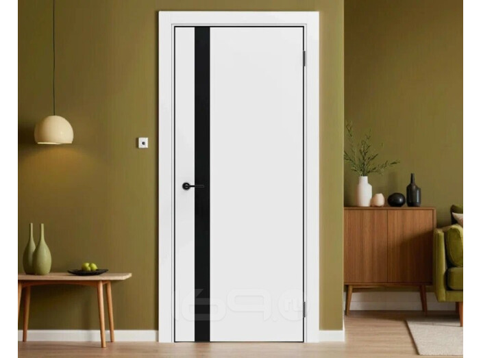 Дверь межкомнатная Порта-51 4AB ПЭТ Shellac White, глухая, декор black star, кромка алюминиевая черная матовая, каркасно-щитовая 220x60