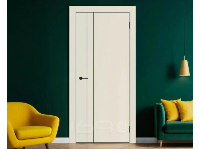 Дверь межкомнатная Порта-58 4AB ПЭТ Shellac Cream, глухая, декор black star, кромка алюминиевая черная матовая, каркасно-щитовая
