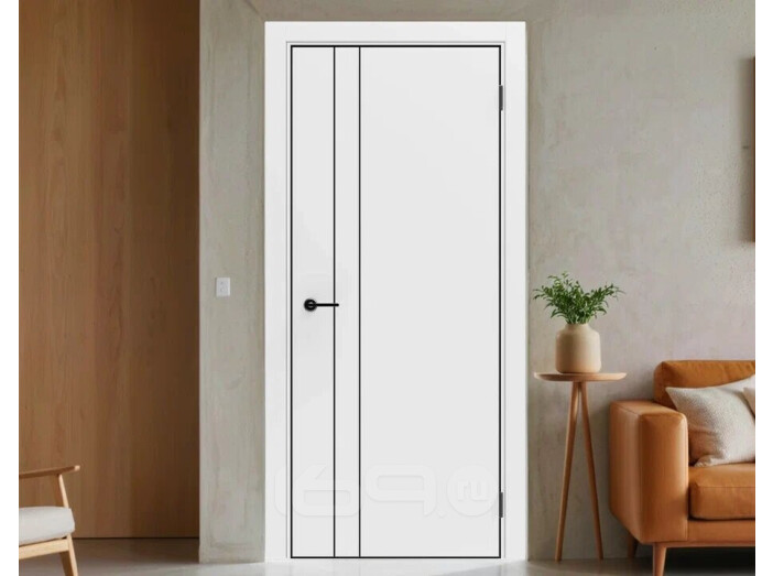 Дверь межкомнатная Порта-58 4AB ПЭТ Shellac White, глухая, декор black star, кромка алюминиевая черная матовая, каркасно-щитовая 220x80