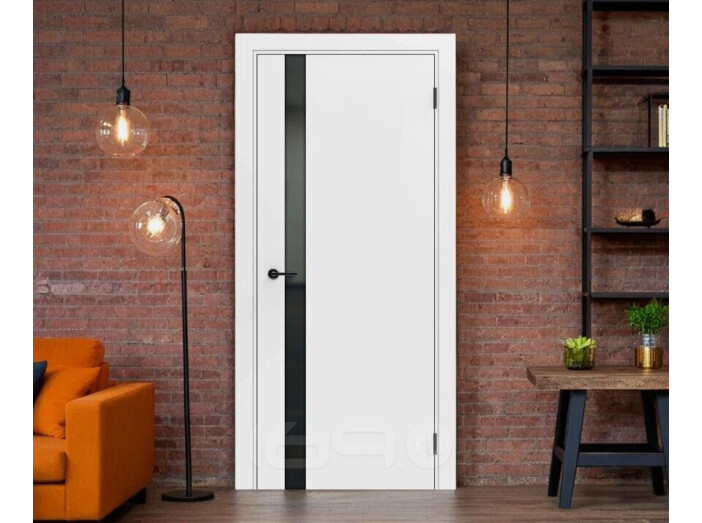 Дверь межкомнатная Порта ПТА-51 B ПЭТ Shellac White, глухая, декор mirox grey, каркасно-щитовая