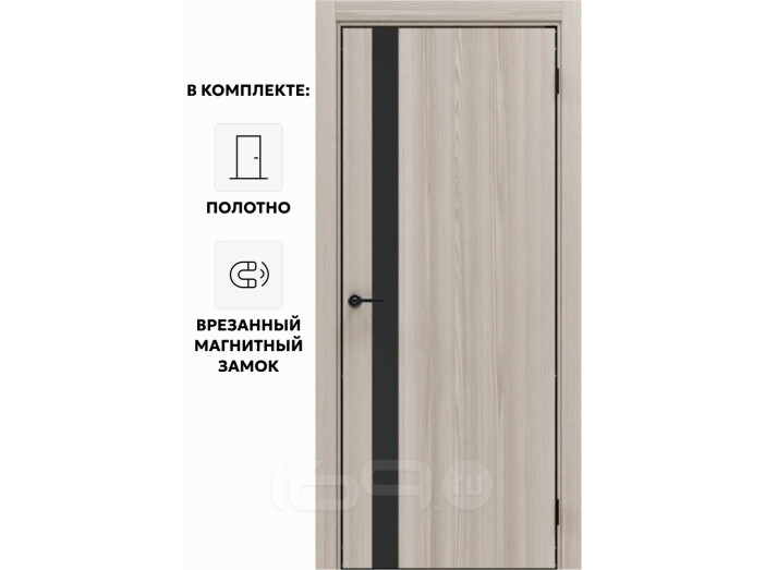 Дверь укомплектована черным окрашенным стеклом лакобель - Black Star.