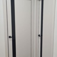 Щитовая дверь высокой прочности, которую обеспечивает жесткий тамбурат с малым размером ячейки и плита HDF (на 33% толще обычной). Используем PUR-клея необратимой полимеризации. С 2-х сторон двери установлен черный декоративный элемент. Дверь укомплектована механизмом защелки M-3-WC (магнитная, черная) для легкого и практически бесшумного закрывания.