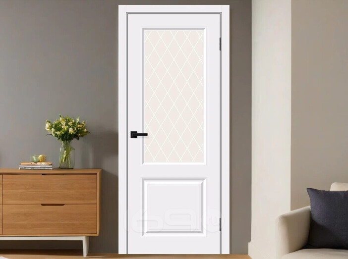 Дверь межкомнатная Скинни-13 Винил White Pro, остекленная, white сrystal, кромка abs, скиновая