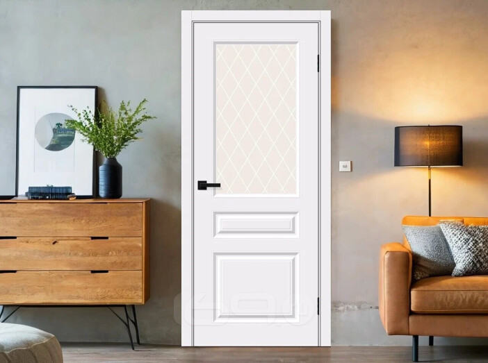 Дверь межкомнатная Скинни-15 Винил White Pro, остекленная, white сrystal, кромка abs, скиновая 200x60