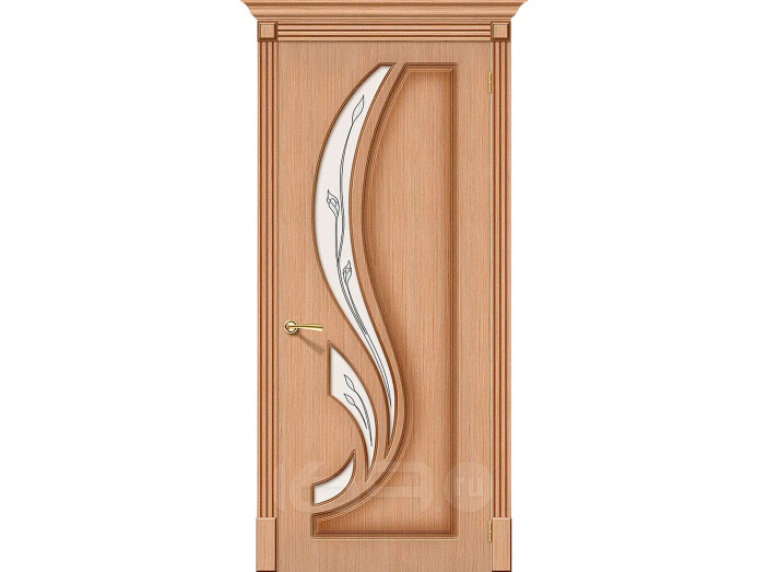 Дверь межкомнатная Лилия Шпонированные, Ф-05 (Дуб), остекленная, сатинат белый, каркасно-щитовая