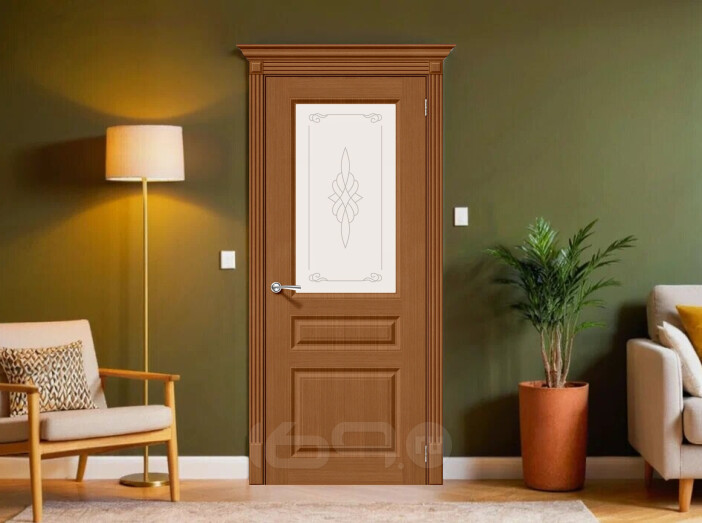 Дверь межкомнатная Статус-15 Шпонированные, Ф-11 (Орех), остекленная, сатинат белый, скиновая