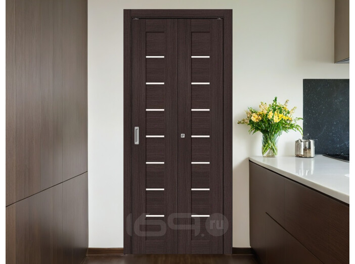 Дверь межкомнатная Браво-22 складная Экошпон, Wenge Melinga, остекленная, magic fog, царговая