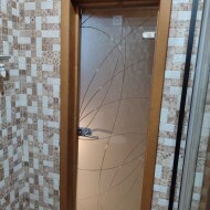Межкомнатная дверь из закаленного сатинированного стекла с художественным рисунком в технике «алмазная грань», с еврокромкой