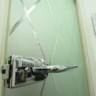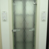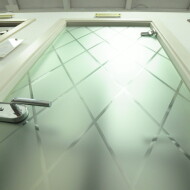 Межкомнатная дверь из закаленного сатинированного стекла с художественным рисунком в технике «алмазная грань», с еврокромкой