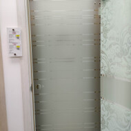 Межкомнатная дверь из закаленного сатинированного стекла с художественным рисунком в технике «алмазная грань», с еврокромкой