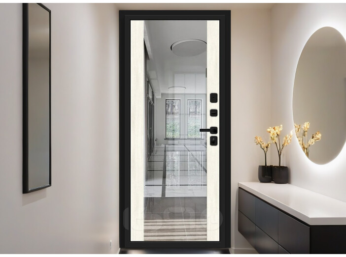 Дверь входная Лайнер-3 Total Black/Nordic Oak, с зеркалом, 2 замка
