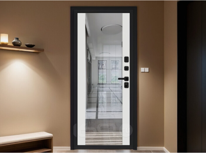 Дверь входная Лайнер-3 (33/В13) Total Black/Off-white, с зеркалом, 2 замка, с ночной задвижкой