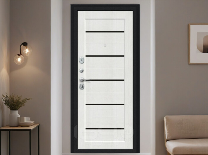 Дверь входная Борн Букле черное/Bianco Veralinga, 2 замка, с ночной задвижкой