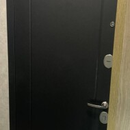 Дверь входная Флэш 119.Б15 Букле черное/Bianco Veralinga, с зеркалом, 2 замка, с ночной задвижкой 205x86 Левое