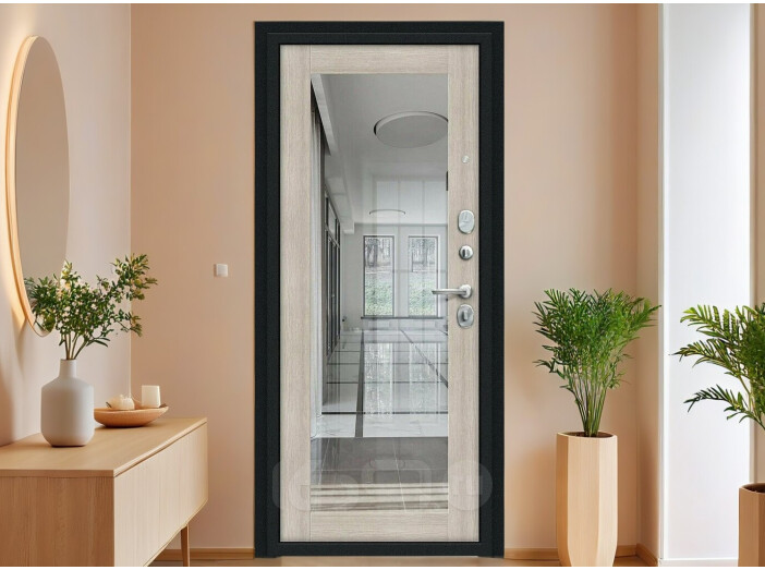 Дверь входная Флэш 119.Б15 Букле черное/Cappuccino Veralinga, с зеркалом, 2 замка, с ночной задвижкой