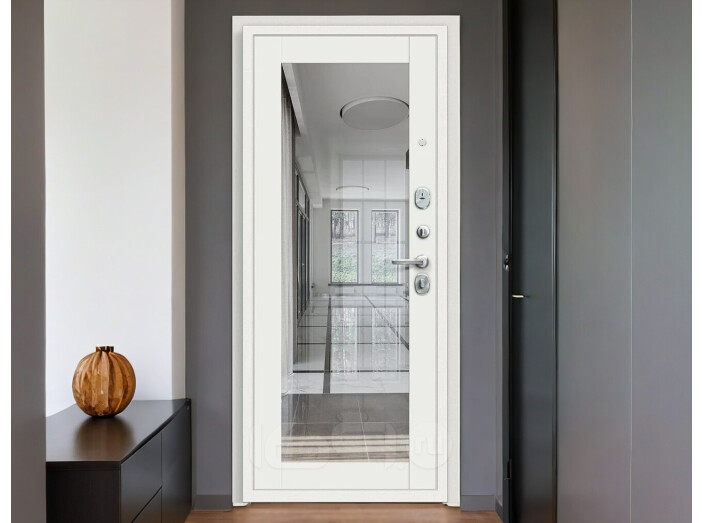 Дверь входная Флэш Kale Off-white/Шагрень белая, с зеркалом, 2 замка, с ночной задвижкой