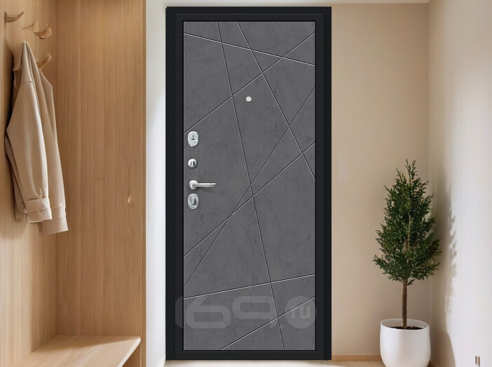 Дверь входная Граффити-5 Букле черное/Slate Art, 2 замка, с ночной задвижкой